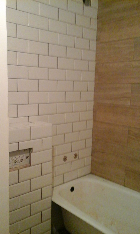Видела еще плитку-имитацию. Но там раскладка линейная, а мне нужна в разбежку.