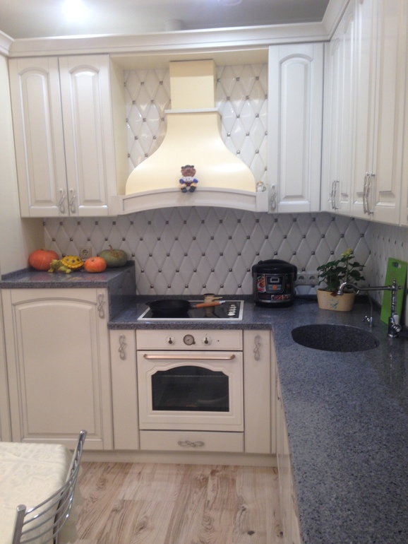 Очень красиво. Заказали в том же стиле)) Скажите пожалуйста а что у вас за вытяжка? На фото не точно видно она белая? или в цвет кухни?