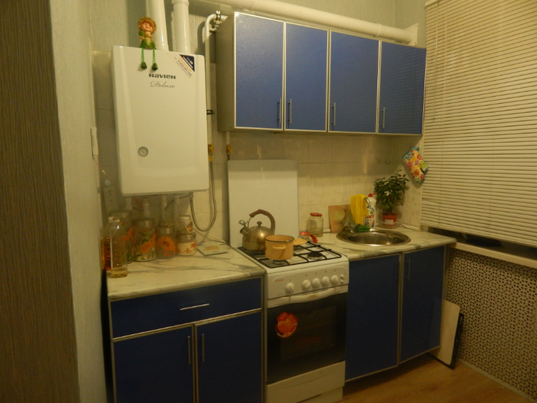 Вопросы и ответыЯ "счастливая" обладательница очень маленькой кухни в голубых тонах. Гарнитур и весь ремонт достался от предыдущего хозяина - молодого мужчины. Вот живу и думаю, как оживить эту голубую лагуну? Какого цвета обои наклеить, чтобы подошло под голубые фасады?
