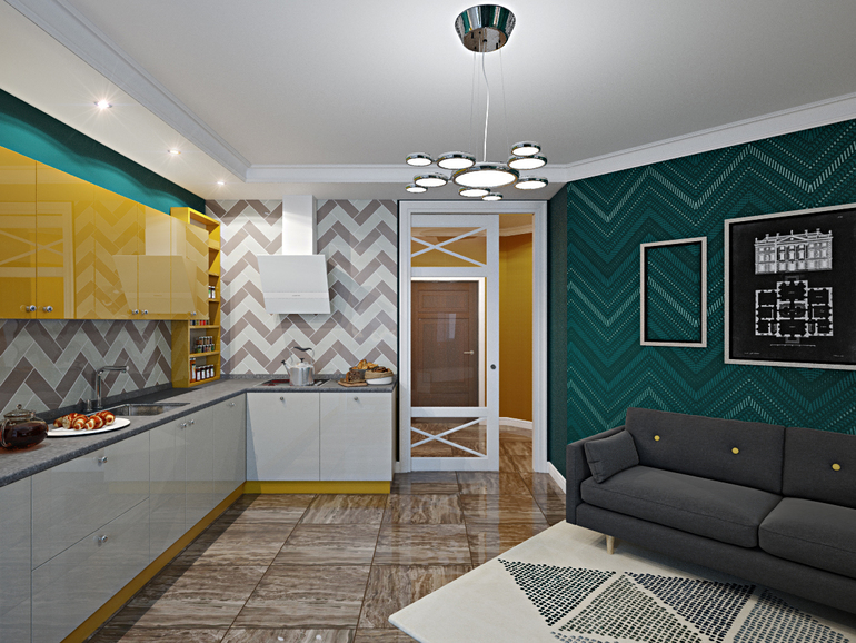 Я бы пол однотонным сделала и стену за диваном поменяла,а в остальном очень нравится,особенно фартук😍