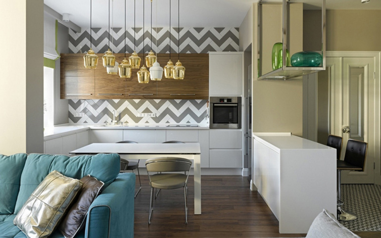 Мне показалось, что плитка на фартуке грубовато смотрится, подумала про мозайку