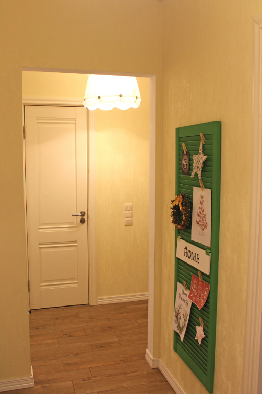 В прихожей тоже изменения. Повесила доску из жалюзийной дверцы и меняю на ней мелочевку.