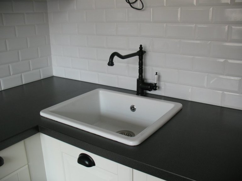 У нас плитка уложена не от столешницы , и плитку резали . у нас гарнитур стоит уже давно, а вот фартук только выложили