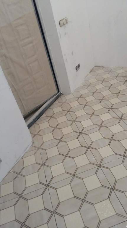 Панно напротив входной двери как бы в прихожей, которая переходит в коридор.Плитка такая