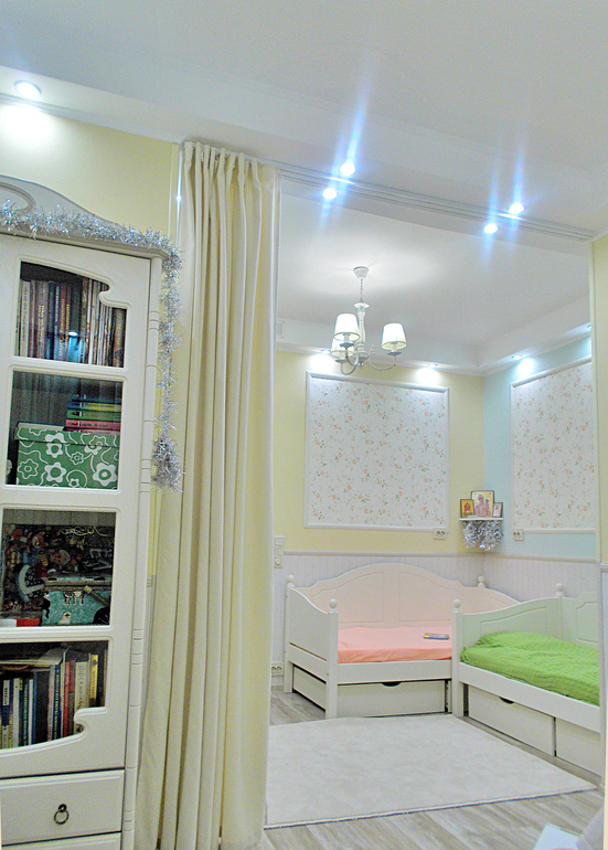 В гостиную лучше взять ковер немного меньшего размера. А в детской второй вариант вполне приемлем. А что у Вас двери действительно так открываются в гостиной?