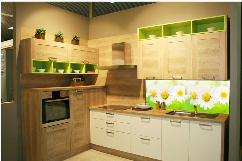 Интерьерное решение кухниДевочки, помогите определиться! Заказали вот такую кухню, только с другим расположением шкафчиков. Нижние фасады по двум стенам будут одинаковой высоты. В качестве фартука решили выбрать закаленное стекло. Так вот, подойдёт ли такой фартук к этой кухне? Уж больно он мне нравится)