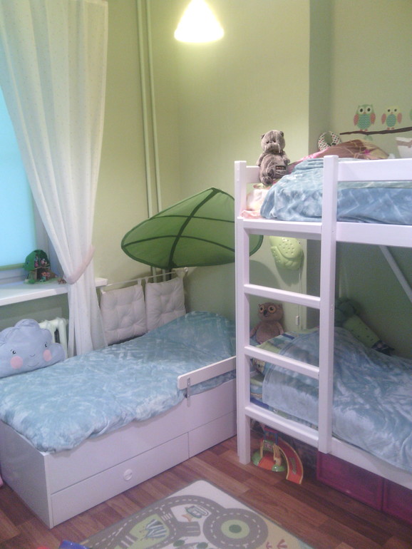 Вроде постаралась все продумать)2-ух ярусную кровать дети очень хотят)На даче спят на такой - все довольны,ни кому не душно)