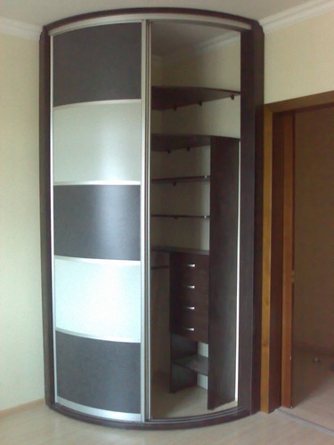 Я в московской квартире сделала себе радиусный шкаф (собственно, в Америке и не знают, что это такое). Помимо более эстетичного внешнего вида, при равной вместительности, дуга забирает меньше места, шкаф совсем не выглядит громоздким, и остается больше свободной площади. Это особенно заметно в случае большого шкафа и/или узкого коридора.