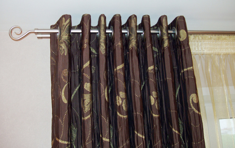 Вот так у бабушки моей. Кстати,это на круглом карнизе-там ткань наверху подогнута и туда вставляется карниз, складки прошиты.