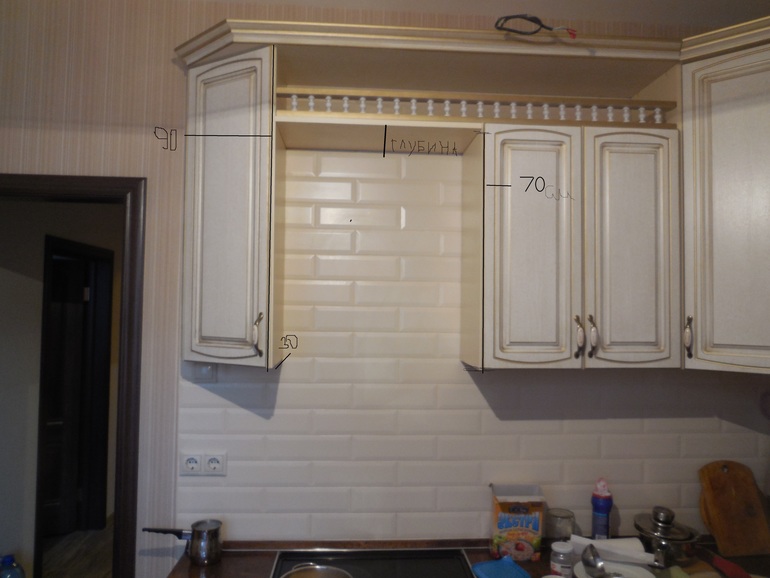 Интерьерное решение кухниДевочки помогите советом. Нужна вытяжка на кухню. Нашла ту которая нравится. но она скорее всего не пройдет по размерам вверху, где перекладина(по глубине). То есть будет мешать эта перекладина, полочку можно убрать. Кожух верхний ставить не буду, так как она тогда будет очень низко.