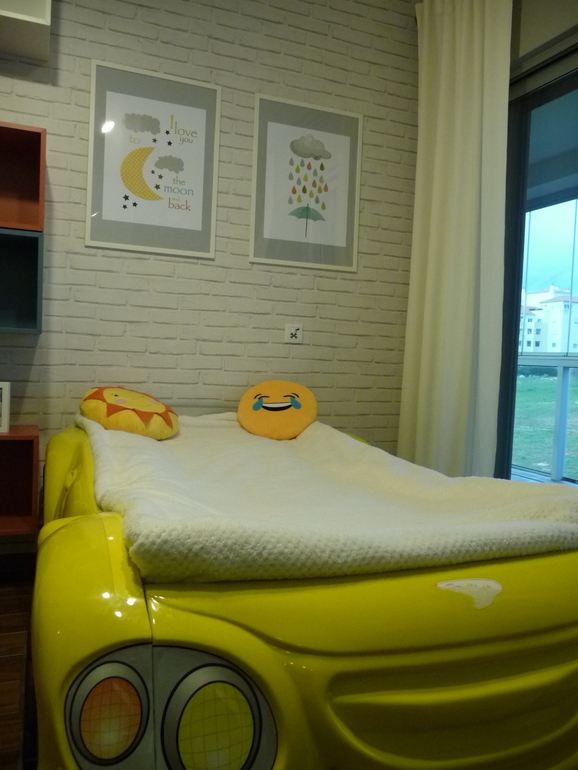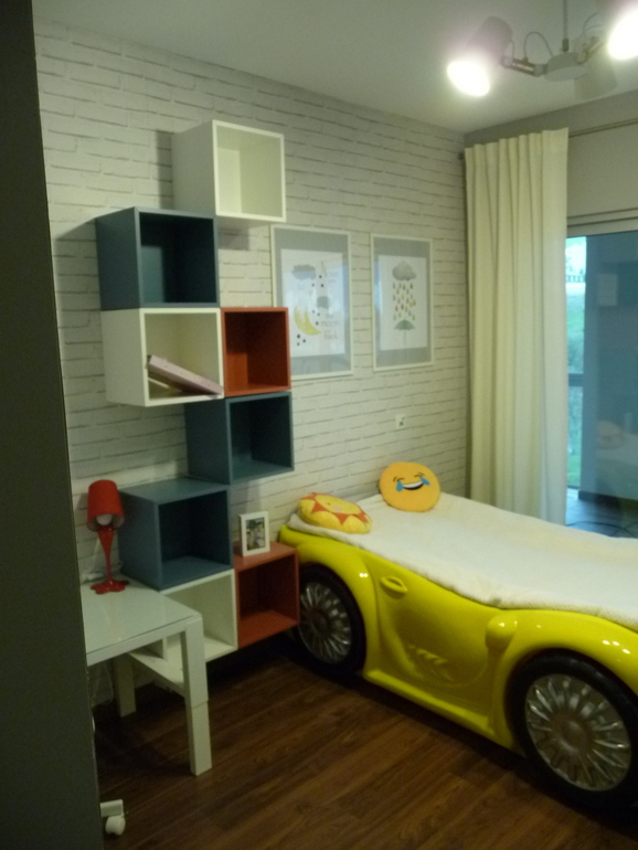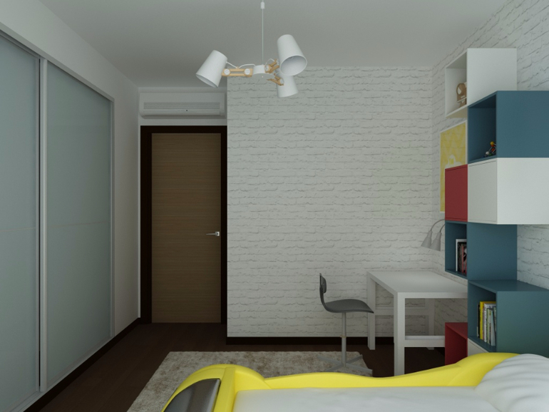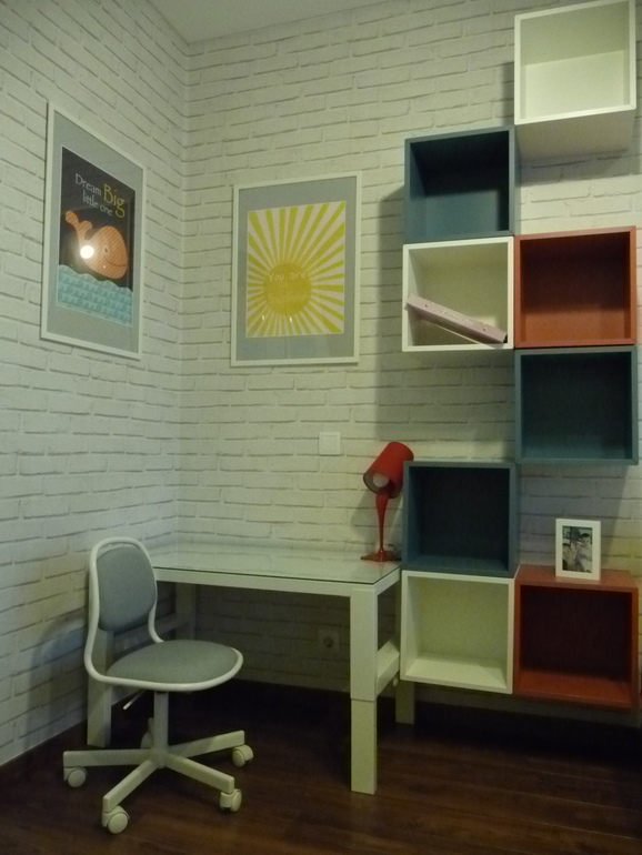 Здорово так! Комната маленькая, но как будто просторно. А на стене обои или кирпичик?