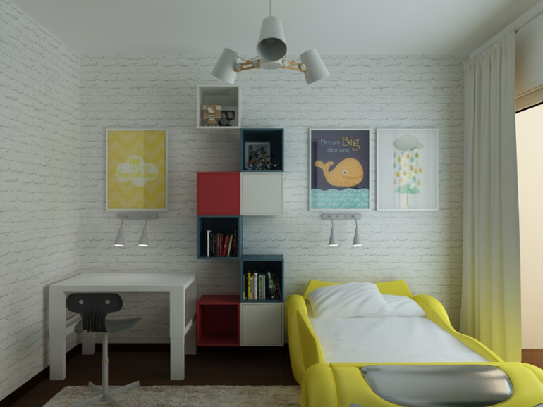 Авторские проекты дизайнеров.(Посты не по теме будут удаляться!)Всем доброго времени! Спасибо моим уважаемым заказчикам за предоставленные мне фотоотчеты о проделанной работе!!! Сегодня покажу вам детскую комнату для мальчика) Ремонт в комнате уже был сделан. Необходимо было заменить обои, оставить кровать и решить где расположить рабочее место, полки для книг. Комната небольшая) Визуализация.