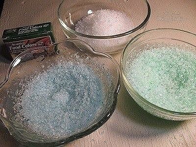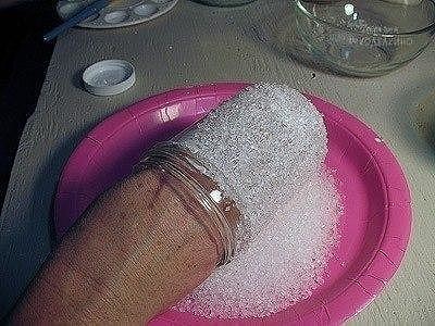 Вымойте банки и снимите с них этикетки. Подготовьте соль. Если вы хотите придать подсвечникам оттенок, смешайте соль с небольшим количеством сухого пищевого или косметического красителя. Густо намажьте дно банки клеем ПВА и обваляйте в соли, затем то же самое проделайте с боковыми стенками. Намажьте клеем верхние края банки и посыпьте сверху солью. Дайте просохнуть несколько часов Когда банка высохла, смахните чистой сухой кистью частички соли, которые плохо приклеились Покройте банку тремя слоями лака (используйте спрей), после каждого слоя делайте перерыв на 20 минут. Подсвечник готов!