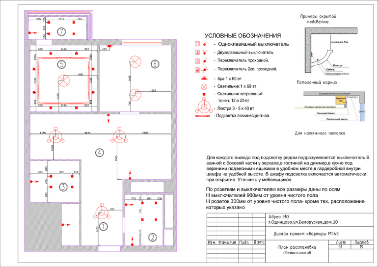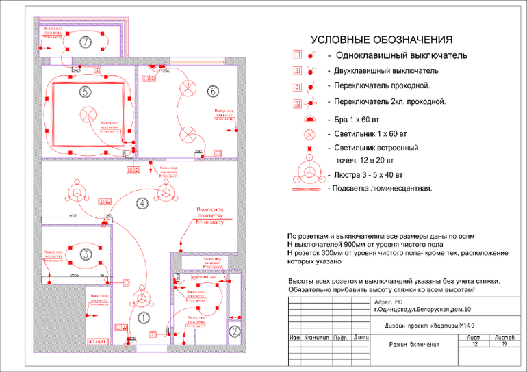 Этот этап я всегда начинаю с плана монтажа стен, осветительного и электрического оборудования. Далее, мы договариваемся о встрече обсуждаем и вносим корректировки в планы. При отсутствии времени и желании, я могу выслать Вам их на электронный адрес.