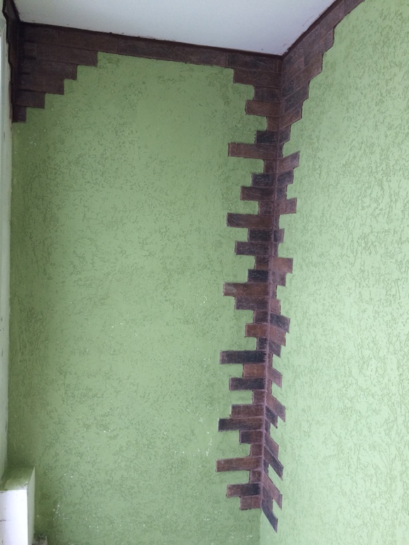 Это на балконе. Купили цветного короеда. На что наносили не знаю, выкладывали пластмассовым шпателем, некоторые называют терка.