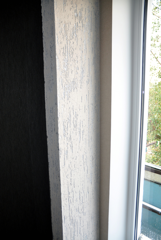 Итог: левая стена первая. Рабочие раньше не делали такую штукатурку. Правая стена уже лучше получилась. Изделека - красиво, то если приблизить видно белые проблески. Штукатурки не хватило. Купила еще штукатурки и краски такого же цвета как штукатурка.