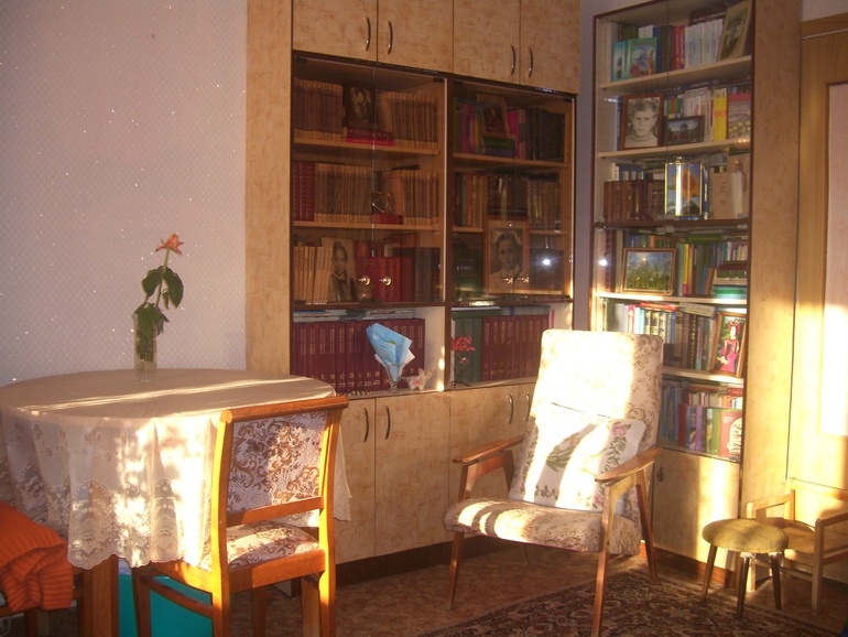 Хотя в стенке мне не нравится не столько ее внешний вид, сколько бестолковость... Места занимает много, а толку мало... Причем много открытых частей - их больше чем закрытых... И еше ящики с двух сторон со стеклянными дверками... В общем, лучше бы не такой большой, но нормальный шкаф... У стенки только одно преимущество - мне неудобно смотреть телевизор, конда он на стене висит... Не знаю почему, но вешали мне не понравилось... Так вот в стенке имеется ниша для телевизора, где он для меня идеально расположен.