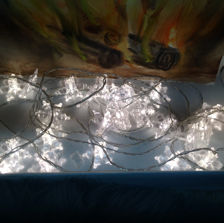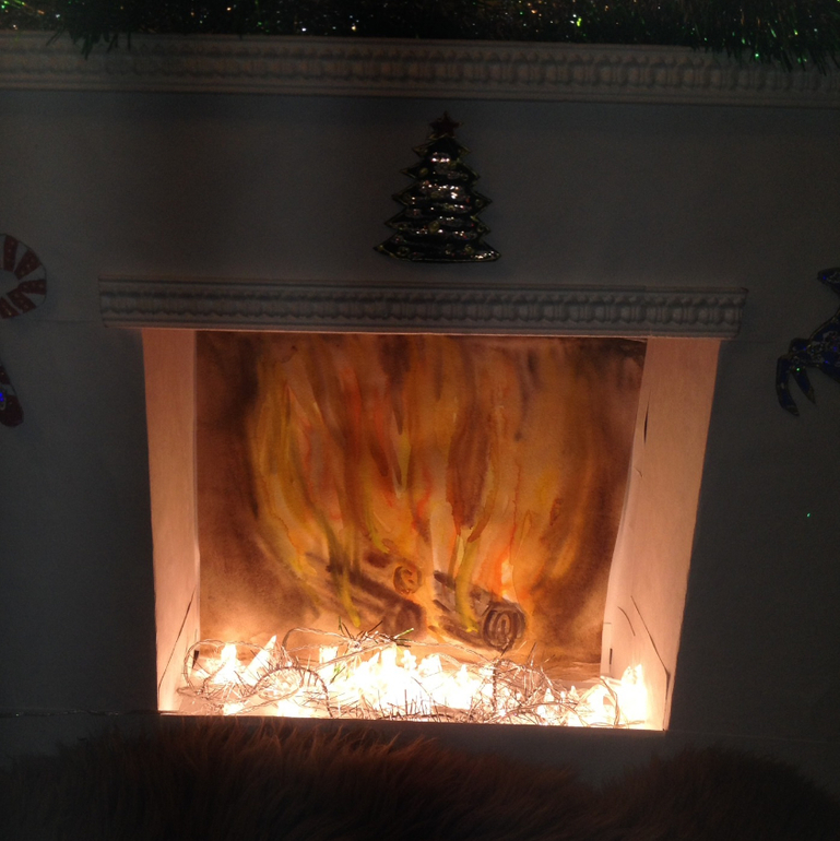 Сам огонь я нарисовала. Можно распечатать на цветном принтере. В камин положила Икеевскую гирлянду.