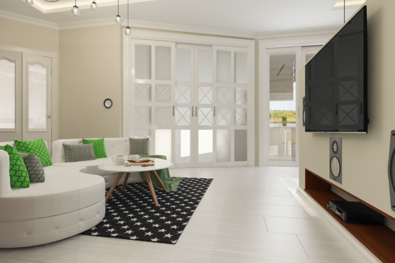 3. в другом частном доме тоже есть санузел с плиткой такого пантона, выглядит очень свежо, а также в кухне-гостиной использован этот цвет для акцентов