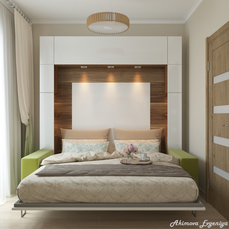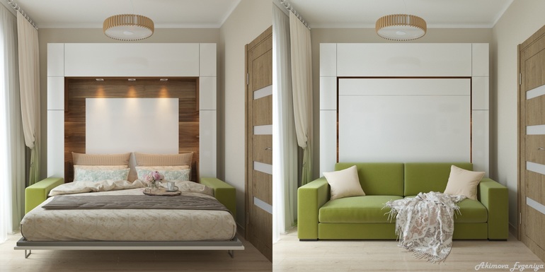 1) Очень маленькая спальня, в которой было решено поставить мебель-трансформер