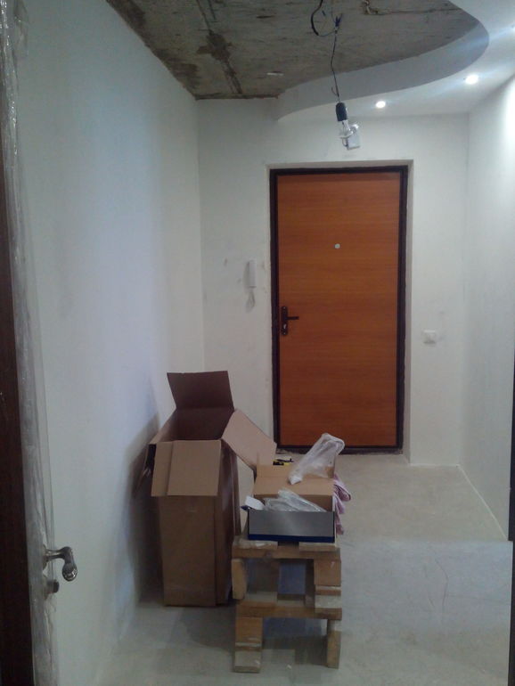 Хотели необычный потолок в коридоре, не знаю что бы там еще смотрелось. А обои красивые очень.необычные цвета.