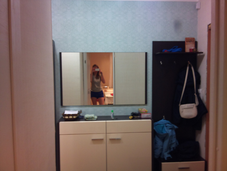 Мне не нравятся ваши обои в сочетании с мебелью. Это старая или новая? Белая на их фоне иначе бы смотрелась.
