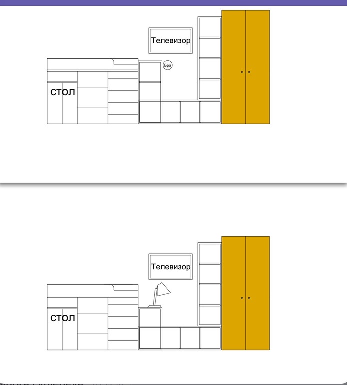 Крайние кровать - чердак справа и шкаф слева бессменны. Пространство между ними 1,5 метра. Планирую заполнить модулями каллапс из икеи.