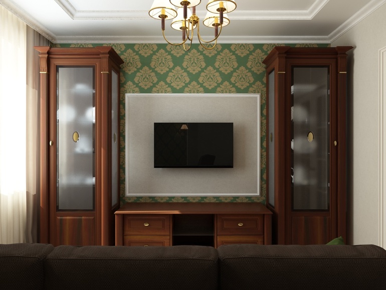 мне кажется в маленькие квартиры лучше что-то более легкое и современное. коричневый цвет стенки существенно уменьшают и без того небольшую комнату. диван лучше тоже более легких оттенков, например серый. из цветов мне кажется можно взять серо-бело-зеленую комбинацию.