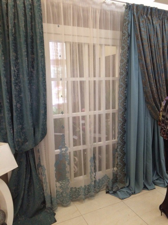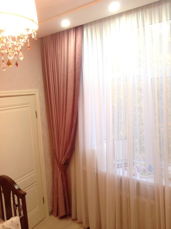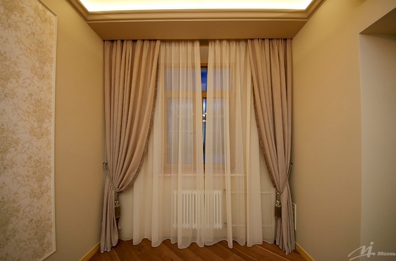 Думала оформить правую сторону где дверь и не закрывается диваном сделать рукав епископа,с другой стороны просто подхват.)Цвет вот не знаю...еще с мебелью не определились..наверное эо будет классический орех.