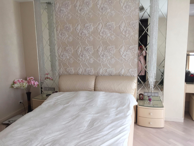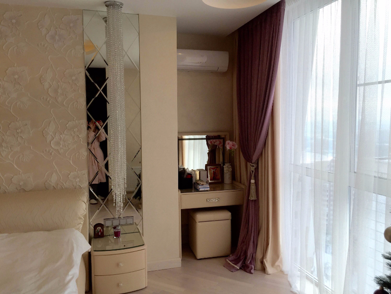 Но шторы получились более сиренево насыщенные ( сиреневые шторы из шенила), и меня это немного смущает, т к если делать покрывало из такой же ткани, то будет очень контрастно и темно. Поэтому главный вопрос - какой выбрать текстиль на кровать , чтобы сделать интерьер в более нежных оттенках, при этом не меняя шторы. Если сделать покрывало однотонным ? то какого оттенка? А если с рисунком? то каким? учитывая панно с орхидеями над кроватью.