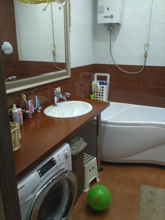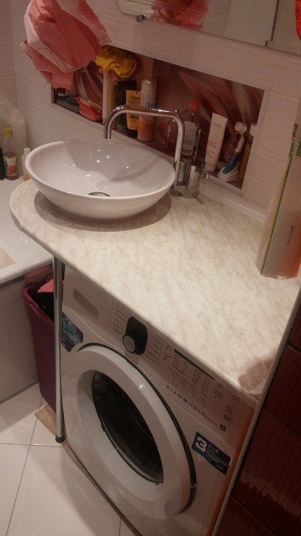 Интерьерное решение ванной комнатыДевочки, может у кого нибудь в ванной установлена столешница из ДСП??? поделитесь пожалуйста что и как? Рассохлась, взбухла, деформировалась? Если есть фото, прям отдельные +100500 в карму