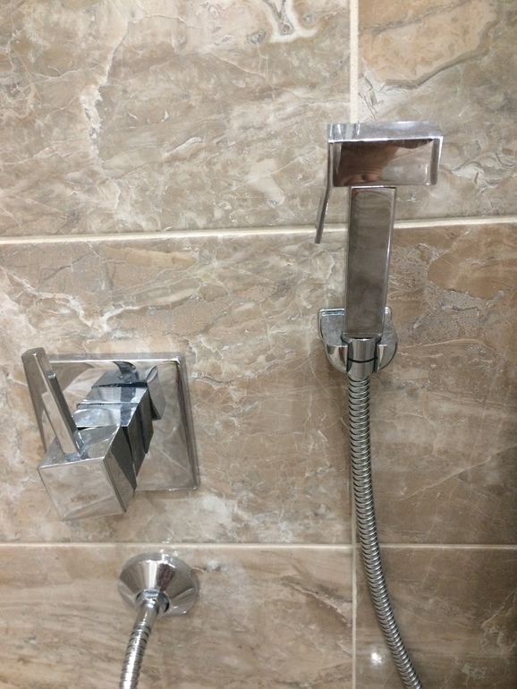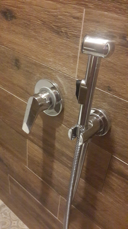 Интерьерное решение ванной комнатыДевочки похвалите свой гигиенический душ, отдельно встроенный (не к раковине). Цена до 8 тыс. руб.