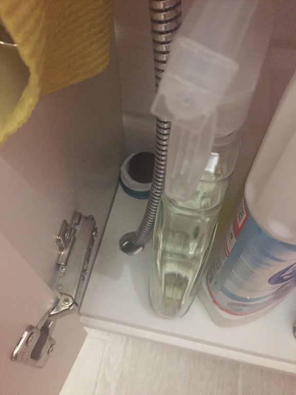Внутри там страх страшный, не зря я так переживала за все трубы и коммуникации. Их все спрятали в тумбу, правда из-за этого она без полочки внутри. Я так подозреваю, что все можно было сделать намного аккуратней, чем у нас. Проблема была в каких-то переходниках, которые нужного размера не могли найти и выкрутились как получилось. Но переделывать уже не будем. Кстати, для гигиенического душа пришлось делать дырочку, ее заселиконили.