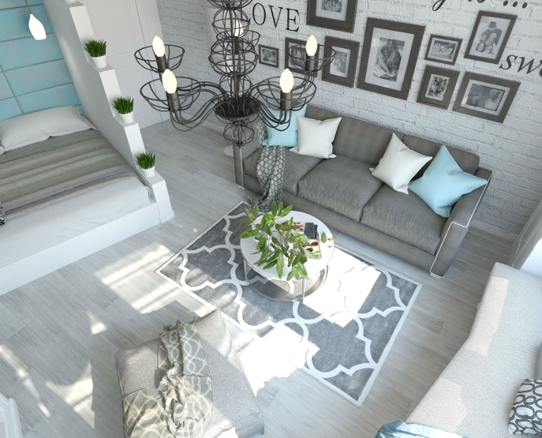 Дизайн проект 1 ком.квартиры для молодой семейной пары.