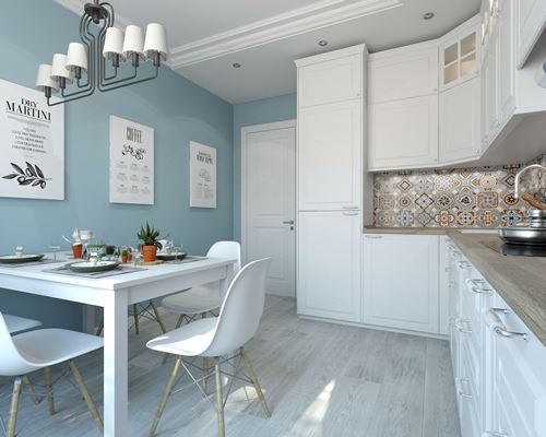 Добрый вечер! Кухня просто вау!! Красивая и воздушная! Обожаю такое сочетание цветов :)) На фартуке какая плитка?