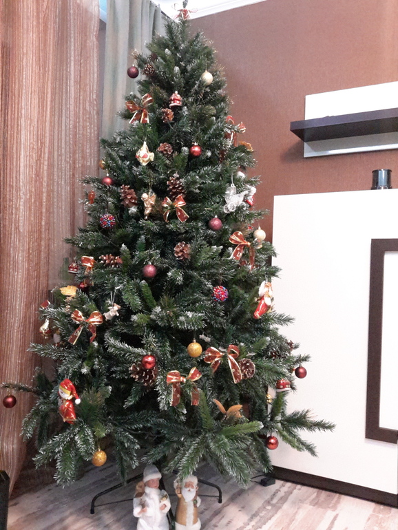 Ага. Прикрою. Спасибо за совет! Я это отложила до пятницы, чтобы полы вымыть перед праздником и оформить низ уже. А игрушки, к сожалению, пока закончились. Елочка новая и игрушек не накопилось еще. А мишуру не люблю.