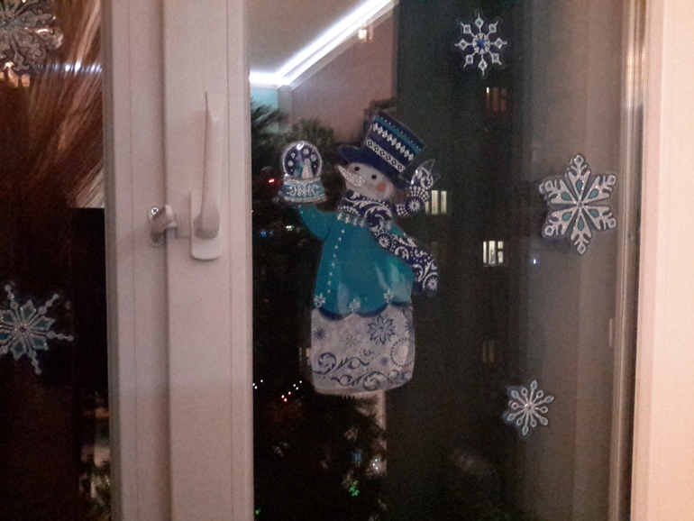 красивая, только крест бы чем-то прикрыть. или белой тканью или мишурой. и игрушек вроде хочется добавить еще. снеговичок на окне супер