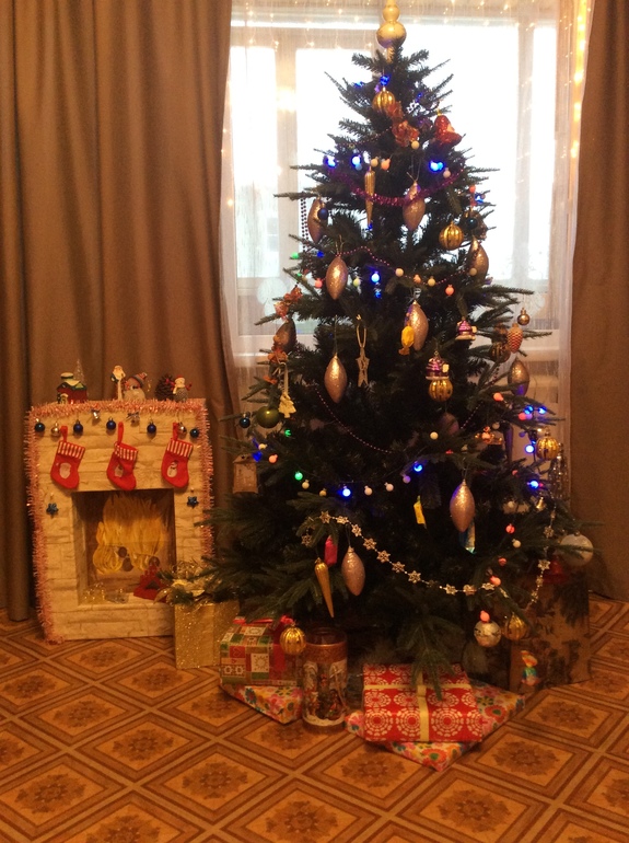 Подготовка дома к праздникам.В нашей крошечной однушке мы тоже нашли маленький уголок празднику. Елку и игрушки купили за выходные, стильно оформить не получится, т. к. ребёнок постоянно снимает и перевешивает игрушки, частично оформили конфетами из новогодних подарков. Камин я уже показывала. Под елочкой подарки для маленьких подружек, когда они в гости зайдут.