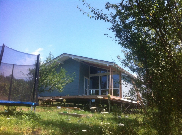 согласна, что немного) утепленный, но пока без коммуникаций...Да, руками сами...муж даже сваекрут сам сконструировал)