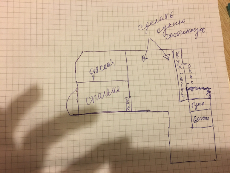 Света, привет, ещё вопрос, то есть нам не согласуют перенос мокрой точки в коридор? ( на плане точка синяя там раковину сделать) , а вдоль стены кухню, потому что получается вся кухня ( кухонный гарнитур ) в комнате? А если как ты предлагаешь именно гарнитур в коридоре тогда все равно обеденная зона то будет над жилым помещением