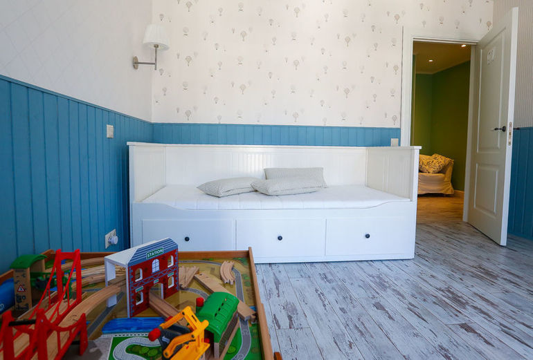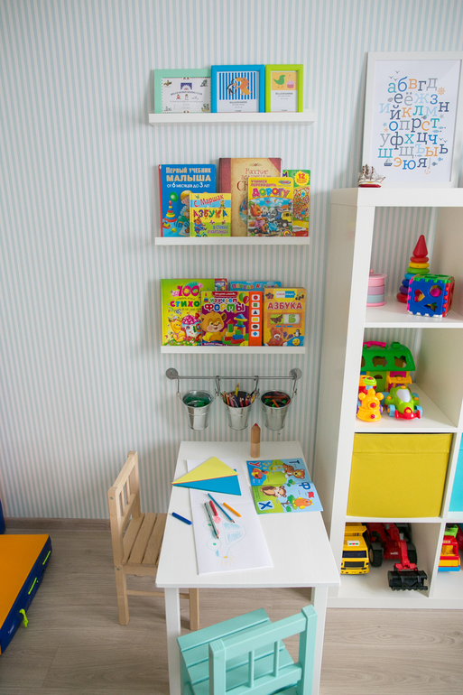 Ого! Не видела этот пост, почти как наша детская: расположение, кушетка,обои в полоску.. только у нас еще магнитно-маркерная доска )
