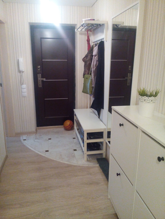 Картинка не моя, но вопрос именно по стыку между напольными покрытиями. Например, наш плиточник говорит, что всю квартиру укладывать одинаковым керамогранитом (кроме спален), чтоб никаких переходов, стыков. Если не трудно, покажите фото, как сделано у вас. Спасибо, заранее.