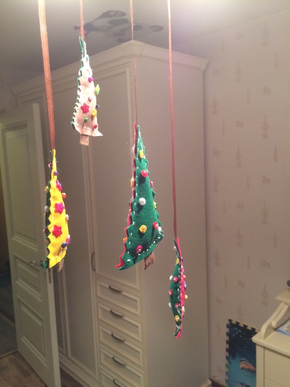 Подготовка дома к праздникам.В этом году нам будет 1.5, волевым решением я елку в этом году не ставила. Сама от себя не ожидала - наделала кучу игрушек из фетра, теперь мой карапуз спокойно ходит смотрит, играет (я теперь планирую игрушки ему делать).