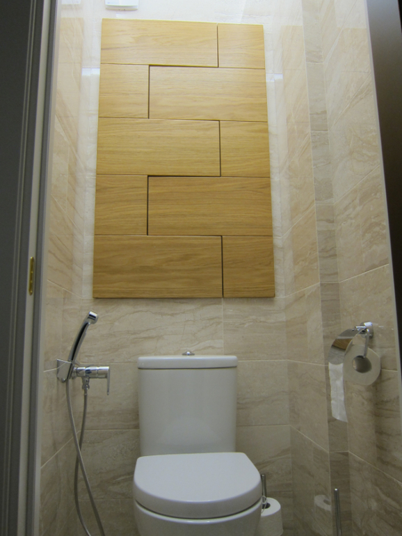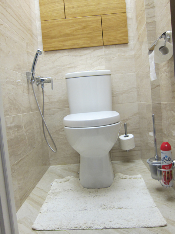Туалет - единственное законченное помещение, к сожалению, из-за ограниченности пространства фотографии нормально сделать не получилось
