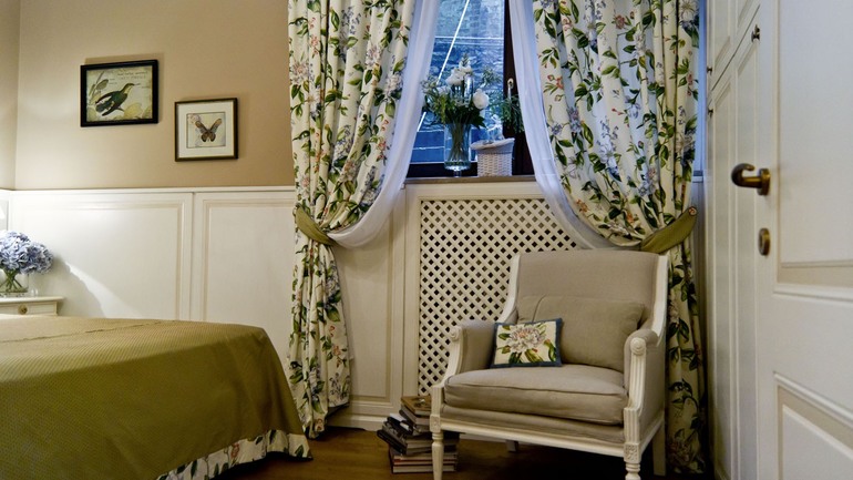 мелкий цветочек на обоях- значит гардины и шторы д.б. однотонными?