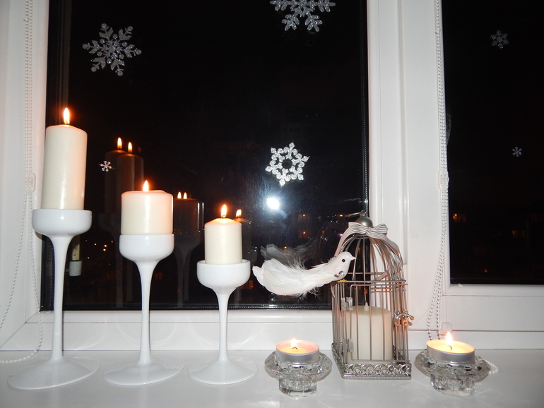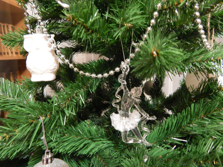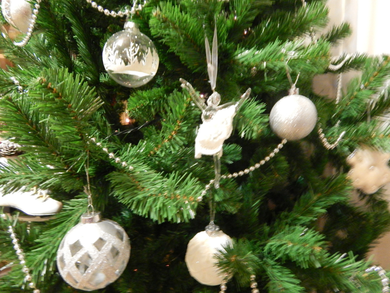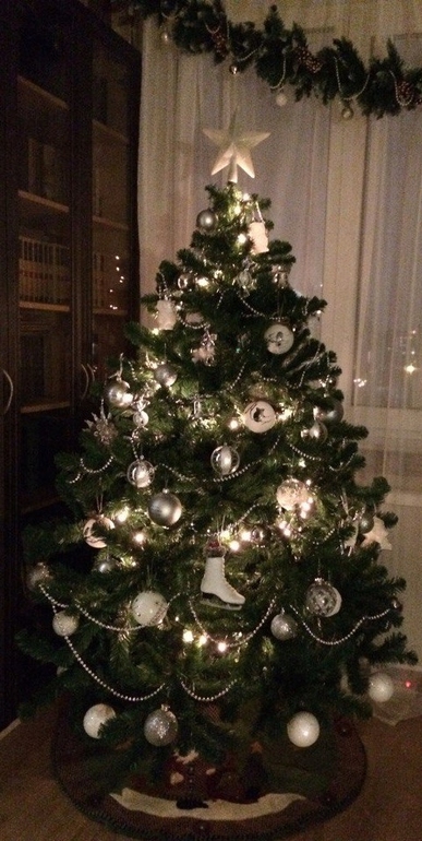 Елку в этом году нарядили рано. Аж 2 декабря. По традиции всегда украшали разноцветными игрушками. А сейчас дети подросли и взбунтовались,проявив редкостное единодушие в том,что елку непременно надо нарядить игрушками белого и серебряного цвета. Все украшения выбирала дочка. Гирлянду с разноцветными лампочками тоже забраковали и купили новую с теплыми белыми огоньками. Мне так даже больше понравилось.