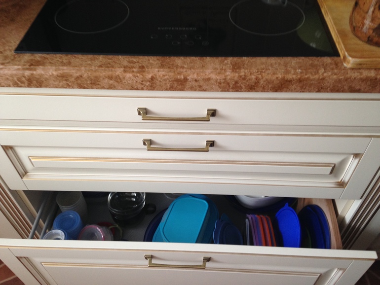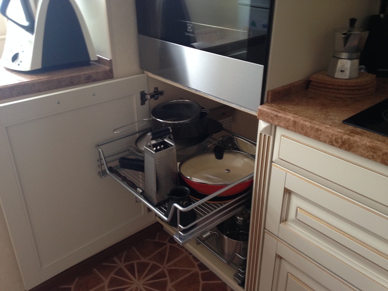Вот как раз на самой кухне у меня вся утварь))), кастрюли, терки, вилки И так далее. А в буфете для гостей)