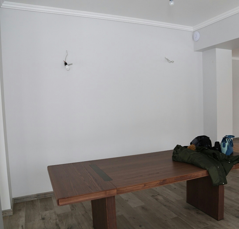Стены так отштукатурены,стул-икея,это обычное стекло,ты на всякий пожарный узнай про небьющееся