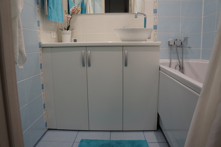 P.S. За двойными дверцами стоит стиральная машина, справа хранится бытовая химия и все для уборки.