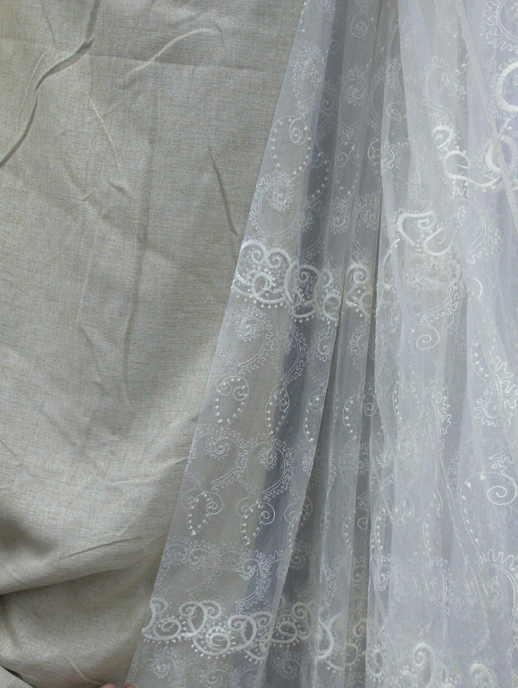 второй вариант, мне кажется, сильно аляпистый. А первый нежный, должно красиво получится. Я говорю о тюле. А вот сочетание тюля с узором и серого льна, даже не знаю. Просто никогда не видела.